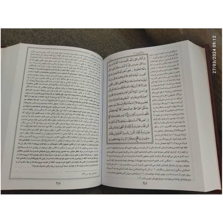 قرآن حکیم،شرح وآیات منتخب،ترجمه آیت الله مکارم شیرازی،وزیری سلفون،انتشارات اسوه،620ص
