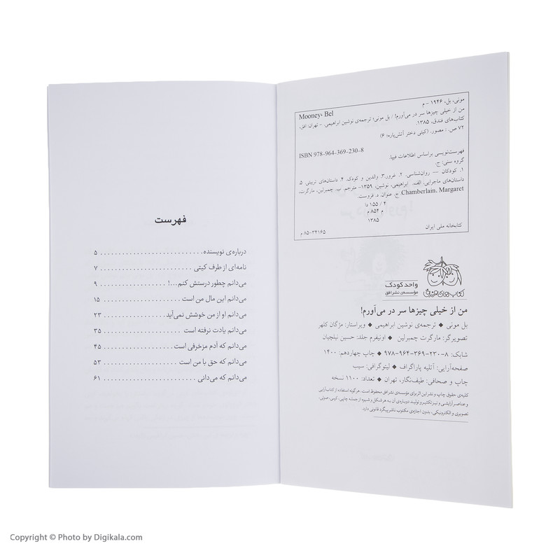 کتاب «من از خیلی چیزها سر در میآورم!» نوشتهی «بل مونی» با تصویرگری «مارگرت چمبرلین» را «نوشین ابراهیمی» به فارسی برگردانده است. این کتاب ششمین جلد از مجموعهی «کیتی دختر آتشپاره» است که برای کودکان گروه سنی (ج) تدوین شده است. «حوصله ام سر رفته!»، «من نمیخواهم!»، «منصفانه نیست!»، «اما تو قول داده بودی!»، «آخه چرا نه؟»، «من نمیتوانم پیداش کنم!»، «من میترسم!»، «ای کاش!»، «ولی چرا من؟»، «تقصیر من نیست!»، «خب که چی؟»، «دوستان من» و «فکرهای بکر کیتی» عنوان کتابهای دیگر این مجموعه است. در توضیح پشت جلد کتاب آمده است: «کیتی میخواهد به بزرگترها نشان بدهد که بزرگ شده و از خیلی چیزها سر در میآورد. حتی میخواهد با یکی دو چشمه از شیرینکاریهایش آنها را انگشت به دهان کند! شاید تو هم مثل کیتی هستی که گاهی با خودش یا بزرگترها مشکل پیدا میکند. با این همه دلش میخواهد کارش درست باشد و اوضاع را بیریخت نکند.» کتاب حاضر را نشر «افق» منتشر کرده است.
